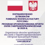 Obóz dofinansowany jest ze środków Ministerstwo Sportu i Turystyki na podstawie umowy nr 2025.0158/0082/SubC/DS-SN/3/KZ, z dnia 09.07.2025 r. W obozie uczestniczyło 37 zawodników Olimpiad Specjalnych z 7 Klubów Olimpiad Specjalnych Oddziału Regionalnego Wielkopolskie -Konin oraz 11 trenerów wolontariuszy.